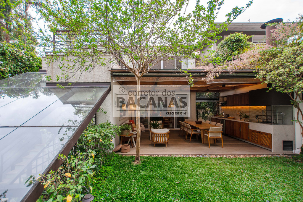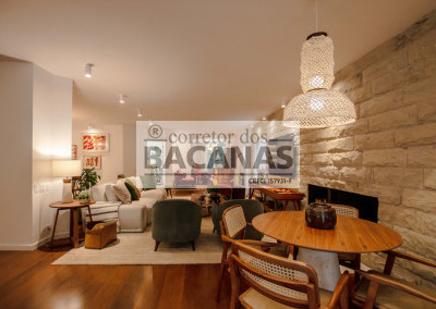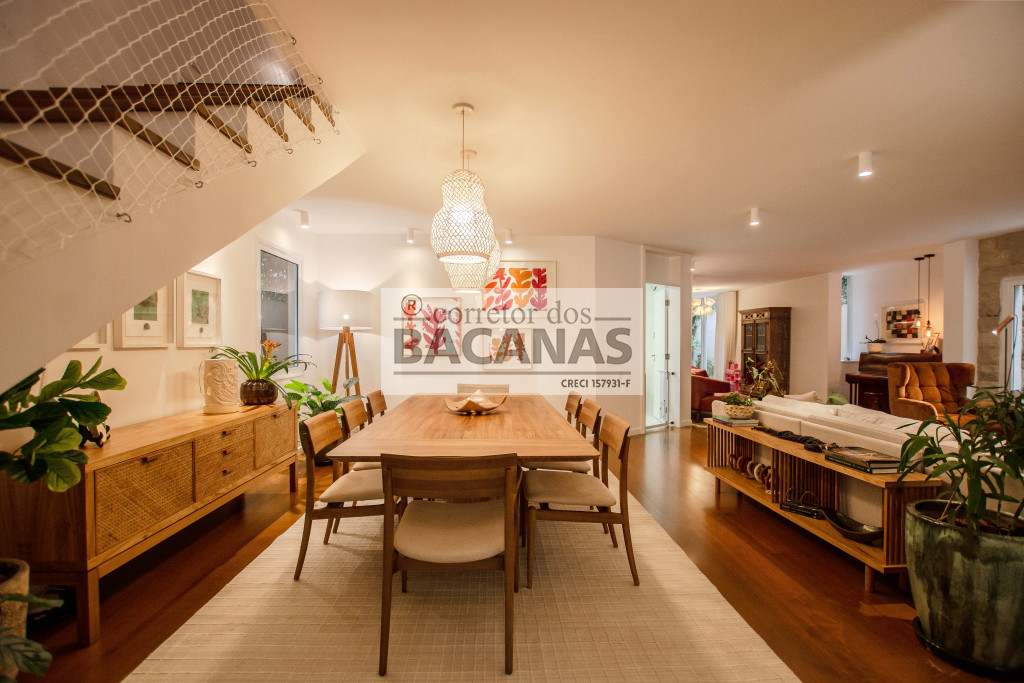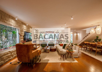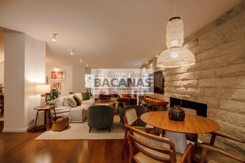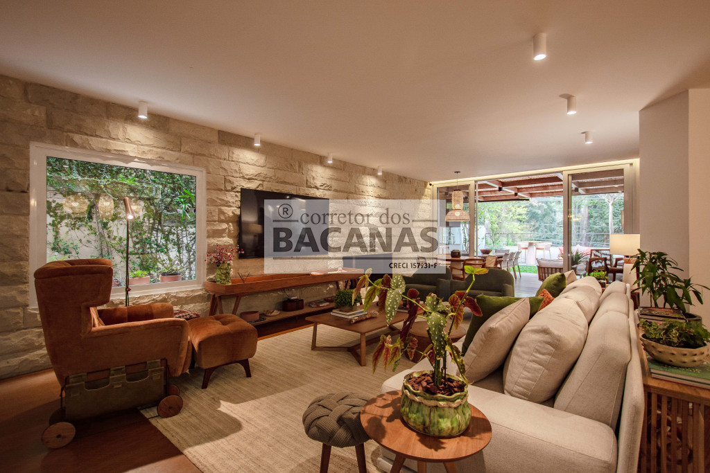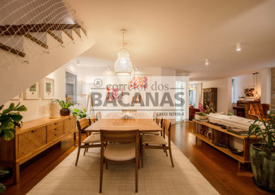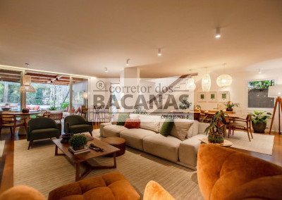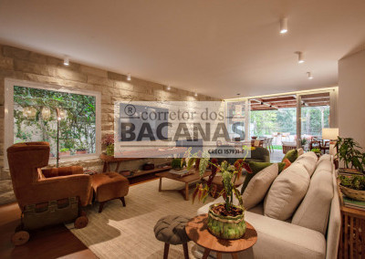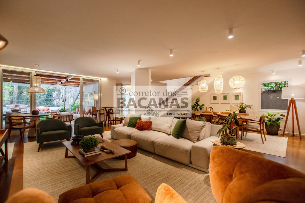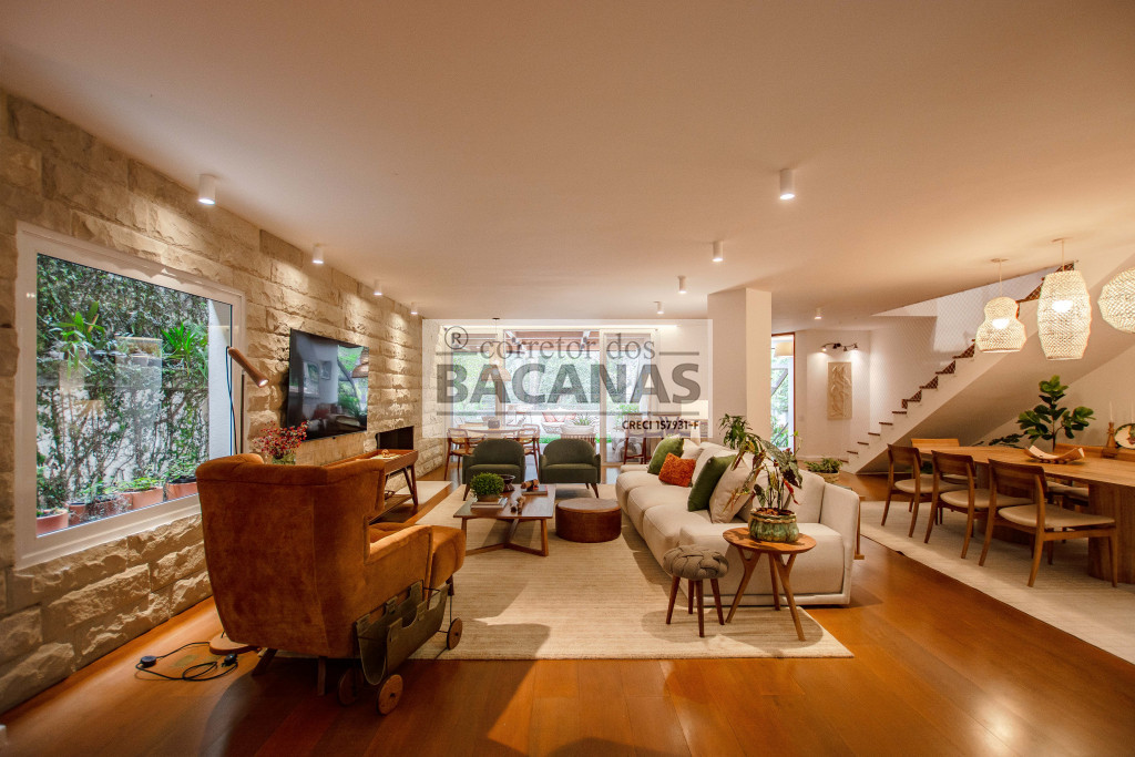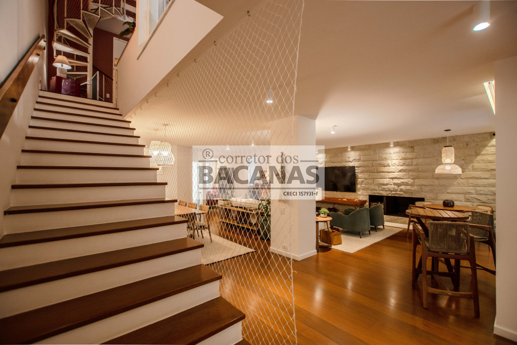 Recém reformada, a residência conta com um amplo living para 4 ambientes, incluindo sala de lareira. Aqui ainda temos um lavabo e espaço para piano.