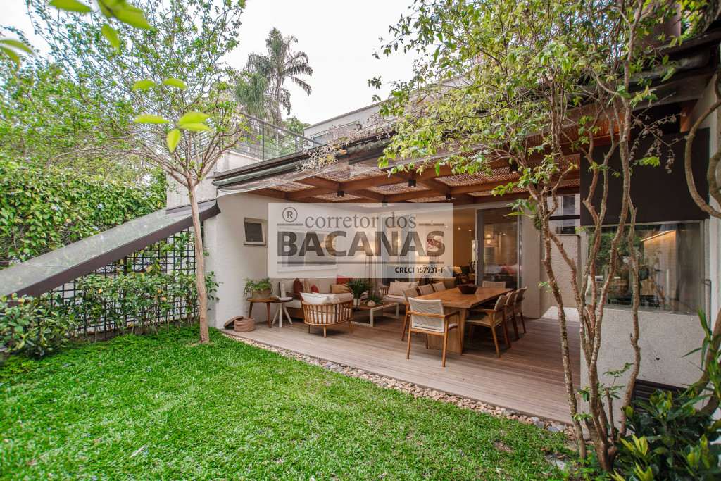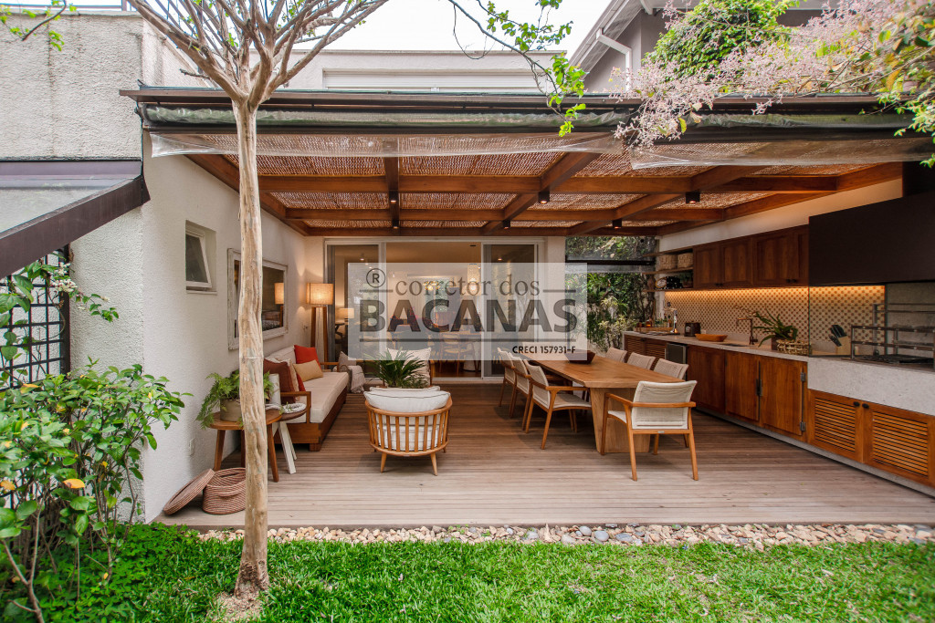 Aqui temos uma área gourmet coberta, com projeto assinado pela arquiteta Marina Linhares, inteiramente equipada com chopeira, churrasqueira, armário refrigerado e muito conforto.
