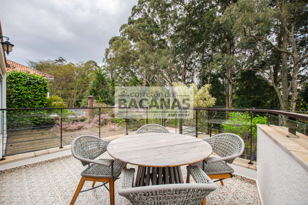 Em frente ao living, uma deliciosa varanda, com gramado e um bosque a perder de vista.