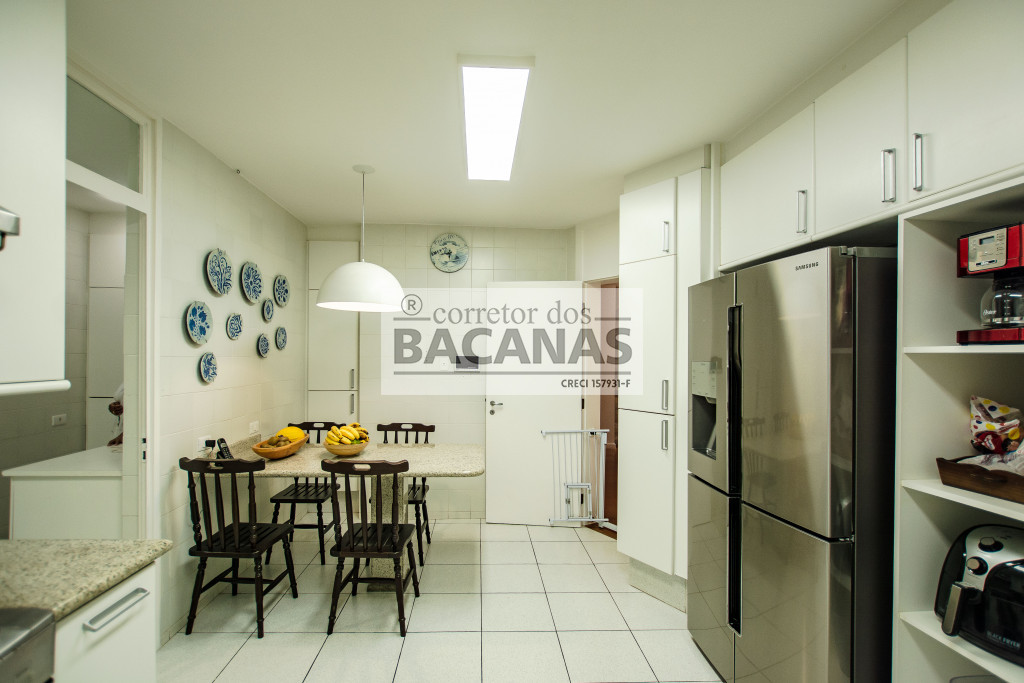 A cozinha é generosa, com área de refeições, ainda temos lavanderia, quarto e banheiro de serviço e uma despensa que é quase um depósito de tão grande, além de um quintal que pode ser usado de várias formas.