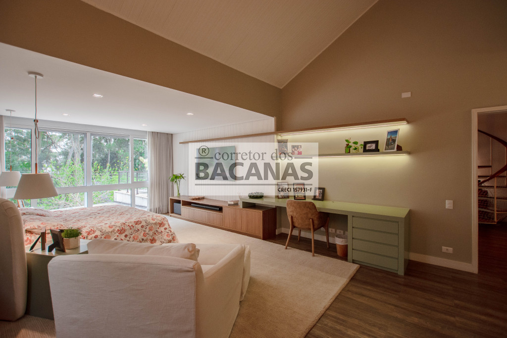 Além disso, temos roupeiro, uma sala íntima e um escritório com duas posições com uma outra varanda.