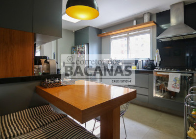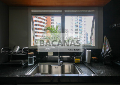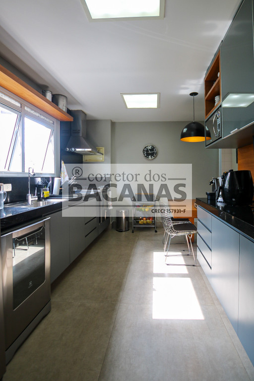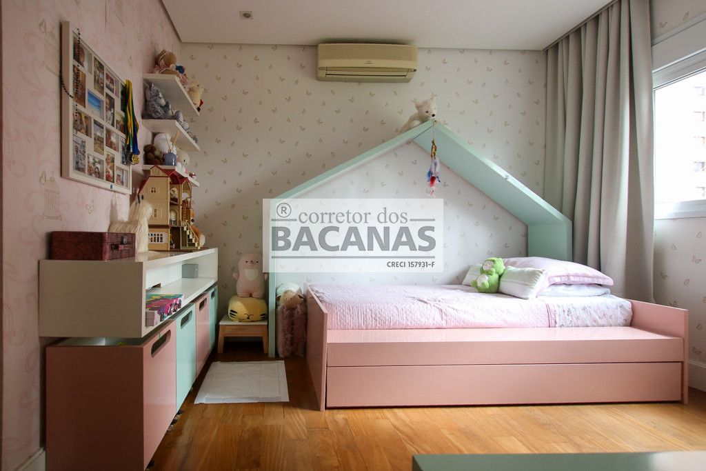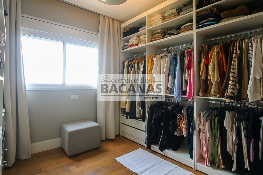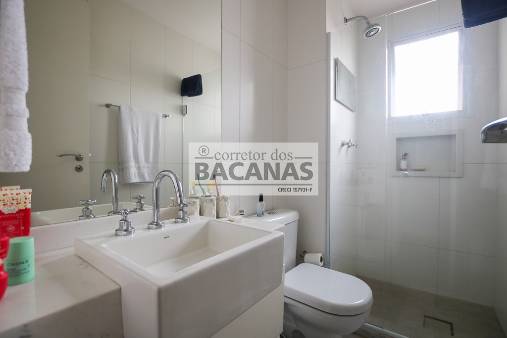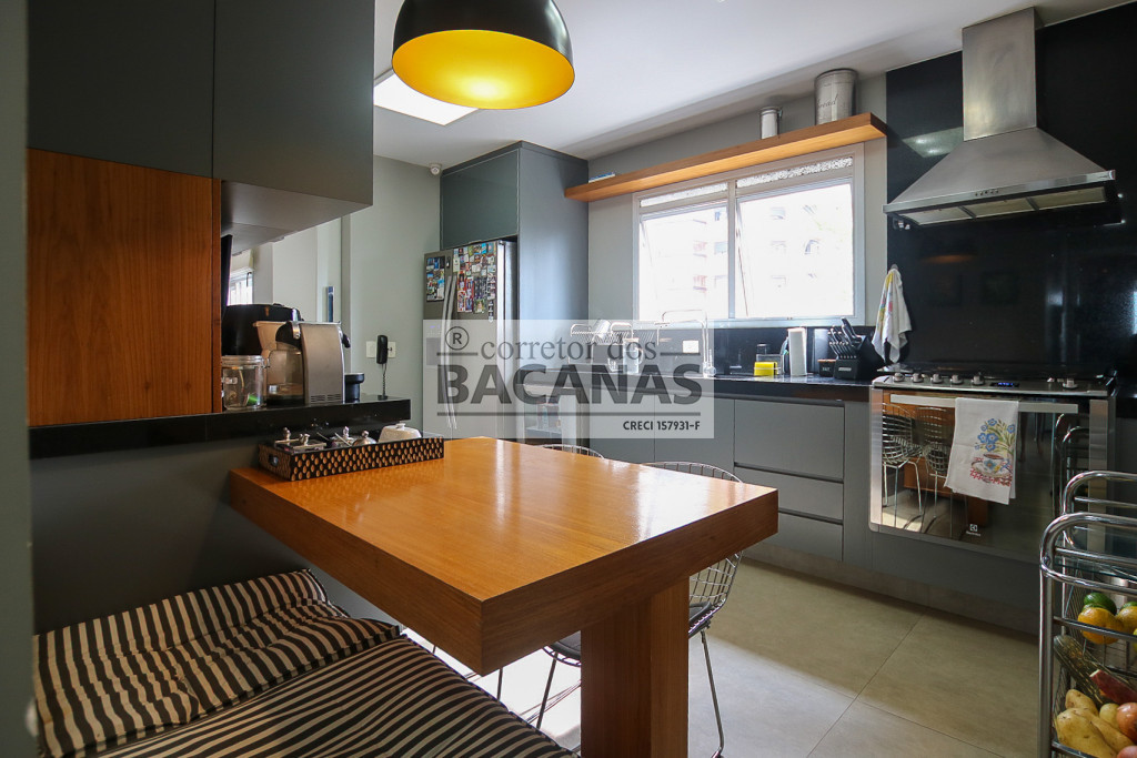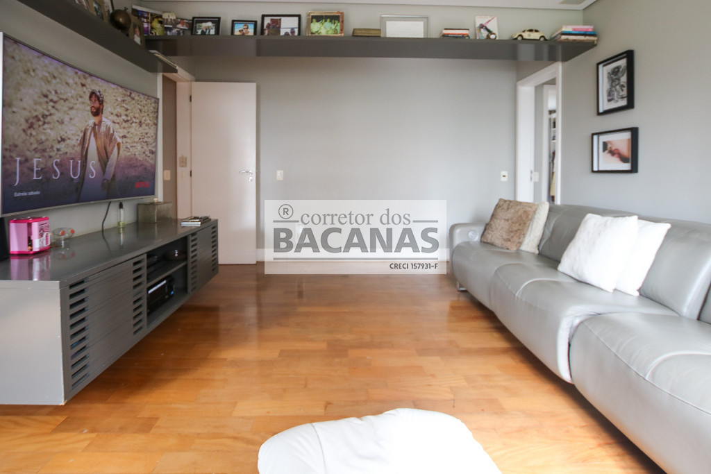 Originalmente com quatro suítes, a planta atual está configurada com três suítes amplas, sendo a quarta revertida em sala de TV (com fácil reversão). A área de serviço é completa, incluindo cozinha, sala de almoço, dormitório e banheiro de funcionário. Um diferencial importante é o gerador, que atende tanto as áreas comuns quanto a totalidade do apartamento.