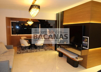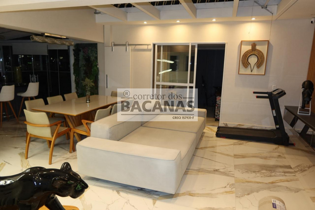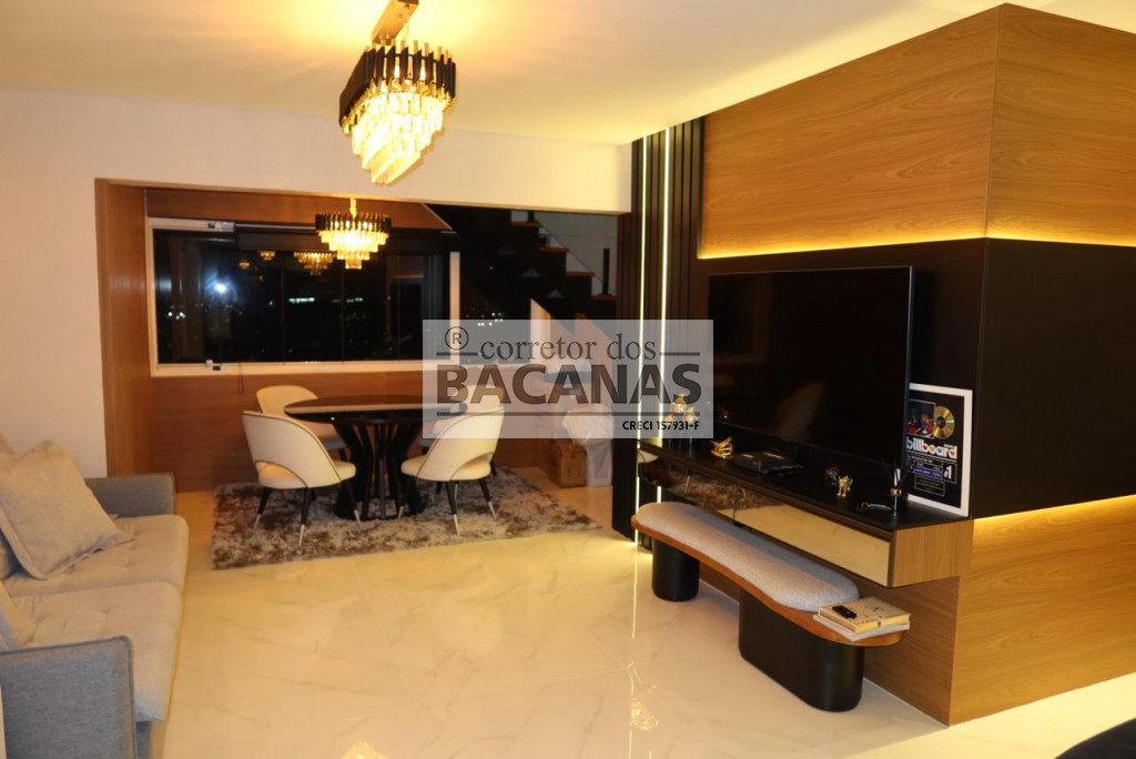 Esta cobertura mobiliada une praticidade e conforto em uma planta inteligente com dois quartos e uma varanda aconchegante. O imóvel se destaca pelas três vagas de garagem e pela área de lazer com churrasqueira, ideal para receber amigos.